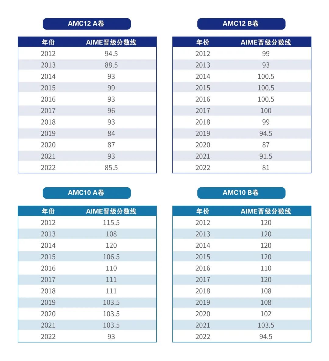 不过由于今年AIME数学竞赛考试难度加深(尤其AIMEⅠ),所以预测今年的晋级分数线会比往年略低几分(给大家吃一颗定心丸)。