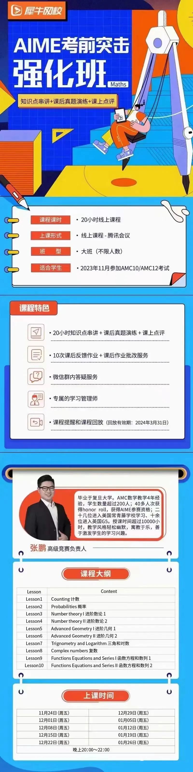 AIME的高含金量,也注定着AIME的备考难度不会低,在教研团队的深度打磨下,开设了AIME的强化冲刺课程,助力孩子冲刺AIME高分!