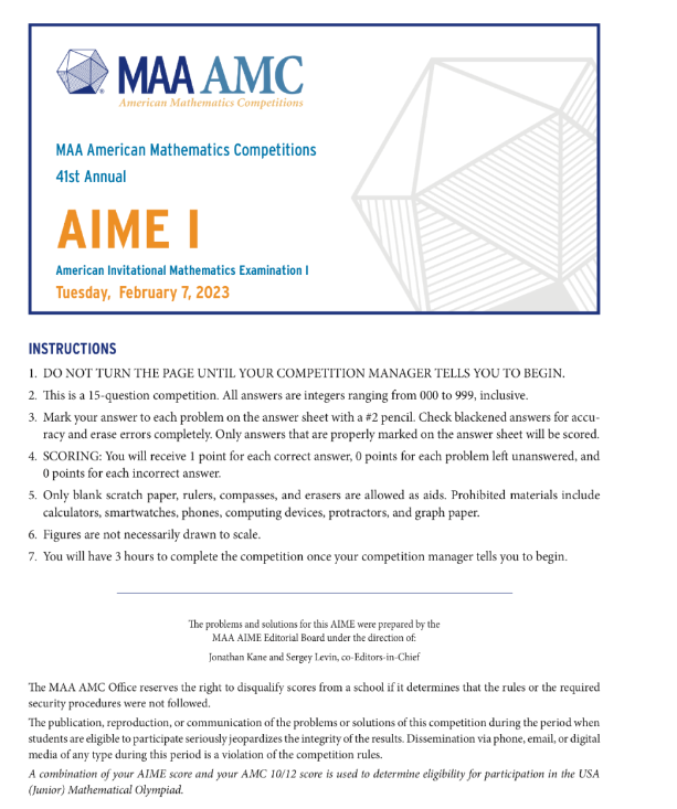 关键字:AIME数学竞赛,AIME竞赛,AIME培训班,AIME真题,