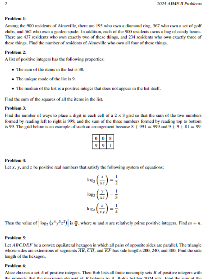 🔥难度提升,从选择题转换为填空题,AIME考试题型均为填空题,这意味着我们不能用做选择题的技巧来解答 AIME,而是在【有限时间】提升对题目的理解以及扎实的数学基础。