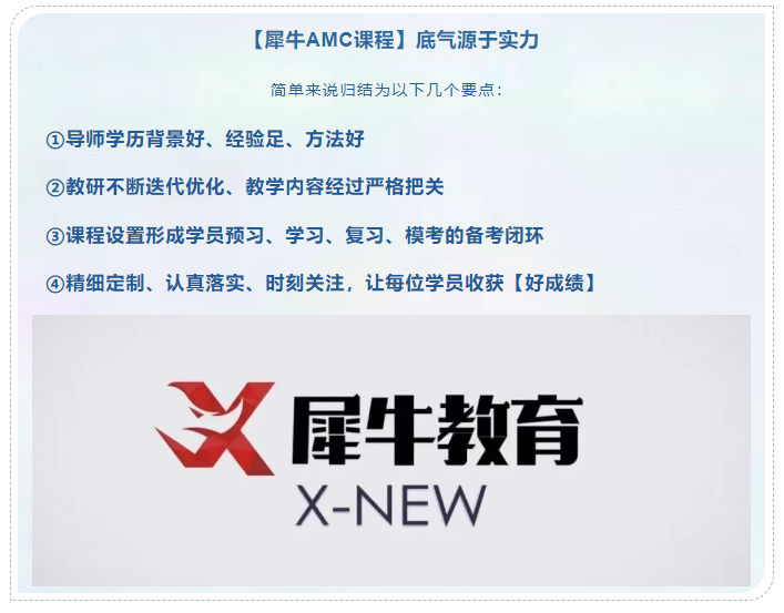 为此犀牛专门开设AMC竞赛课程直通车,长线备考,金牌导师带队拉长备考周期,扎实基础夺奖。