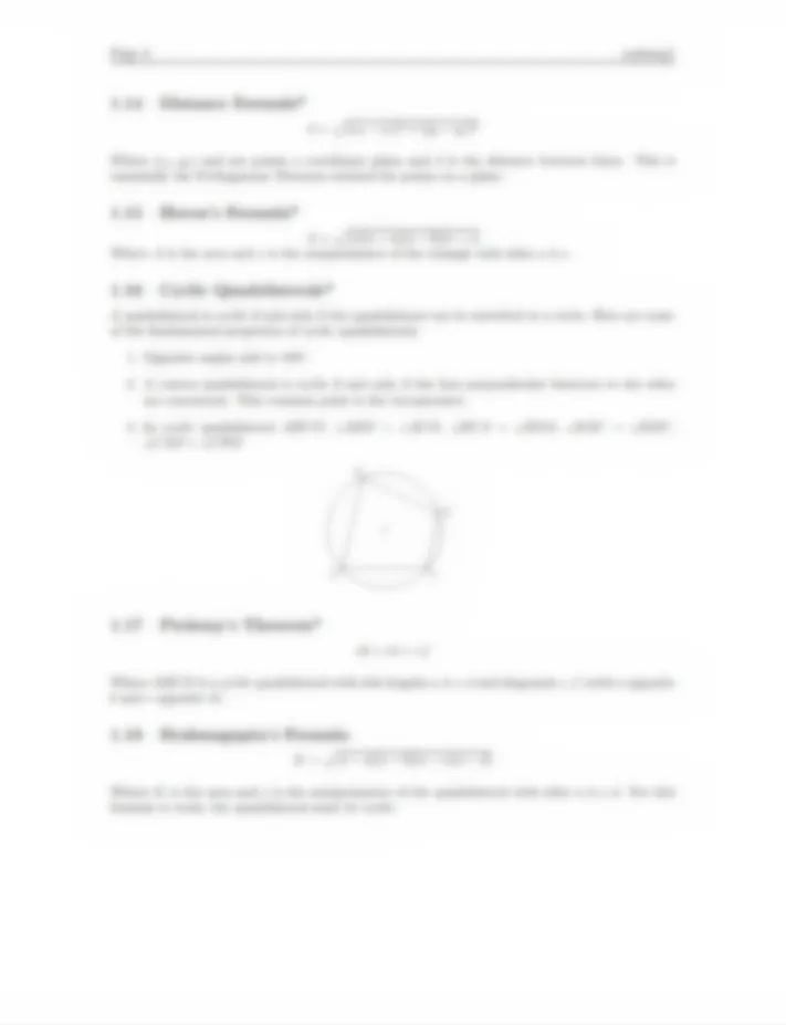 进阶几何:进阶几何作图;三角形进阶、正弦定理、余弦定理、内切圆和外切圆,斯图瓦尔特定理,共点和共线;圆和四边形,四点共圆,圆的外切四边形;正多边形,角度,周长和面积;进阶平面几何技巧;解析几何入门