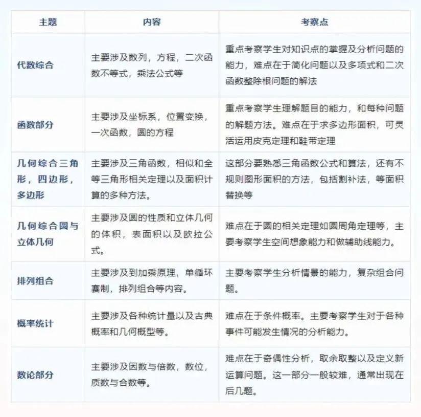 2024AMC10备考仅剩下70天时间,同学们要了解AMC10竞赛常考的代数、几何、组合和数论这4个板块易考点及重点内容。下面是一些易考点整理,大家可以参考。