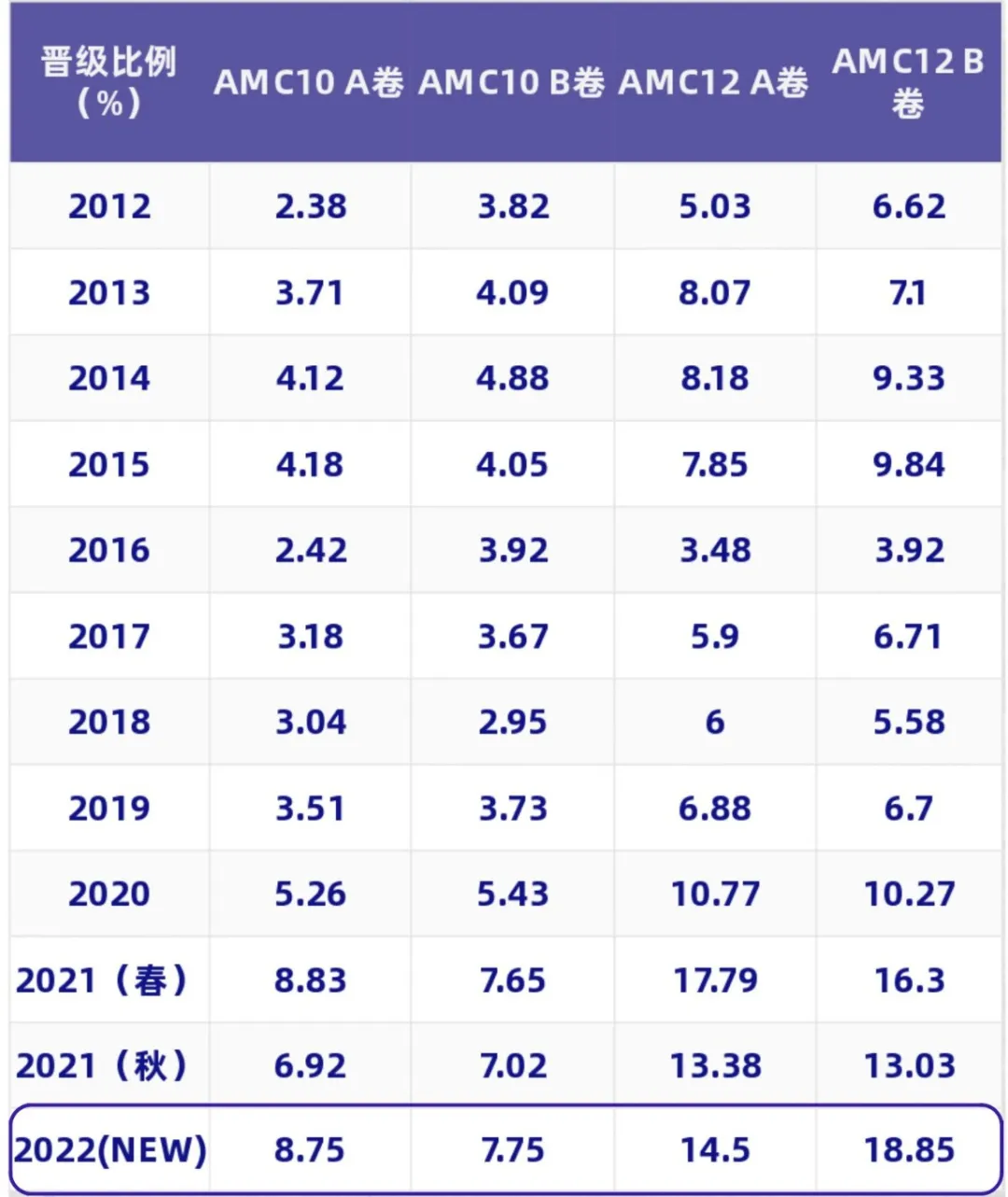 AMC10竞赛晋级AIME的分数根据比例划定,虽然每年的分数线都在变,但是绝大多数情况下都保持在较高的水准。