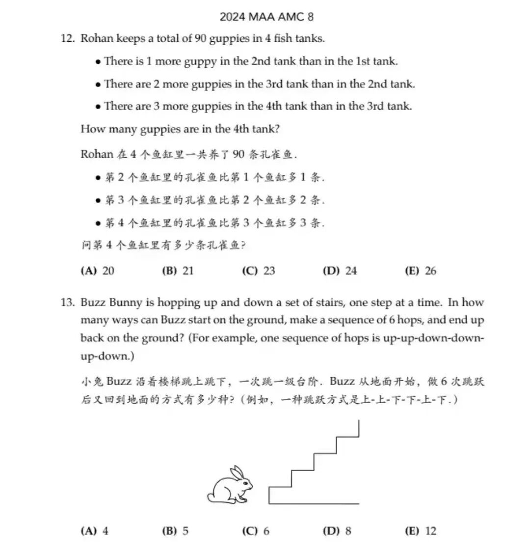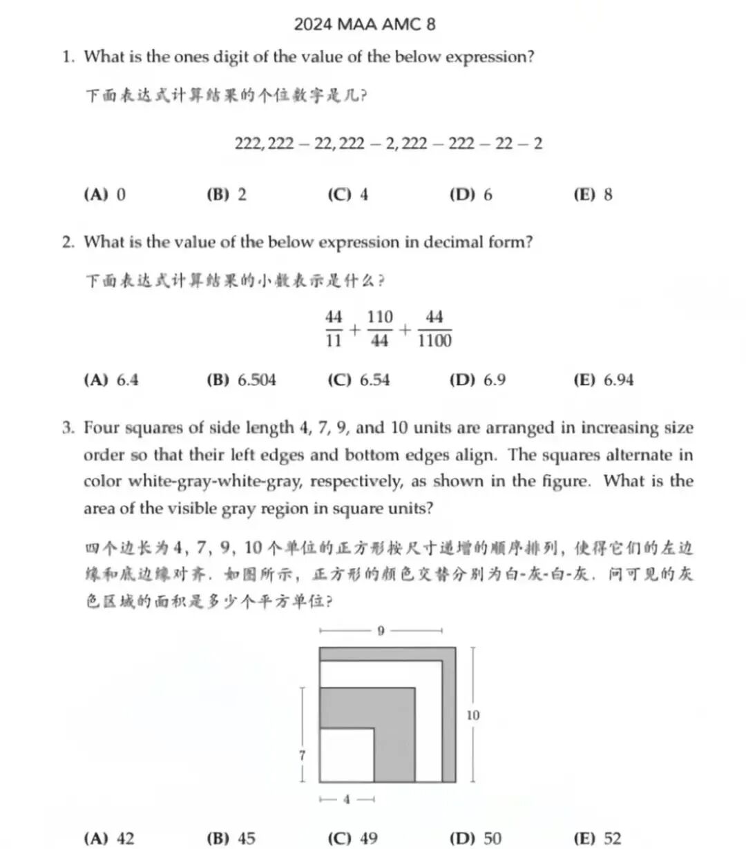 2024年AMC8数学竞赛的考试内容大致可以分为以下几个板块: