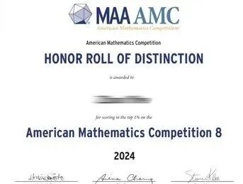 参加amc8竞赛,取得好成绩,获得荣誉证书,为未来升学发展增添光彩!