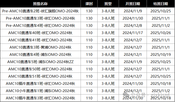 学习阶段:Pre AMC10、AMC10/12基础+强化+冲刺,AIME冲刺班。