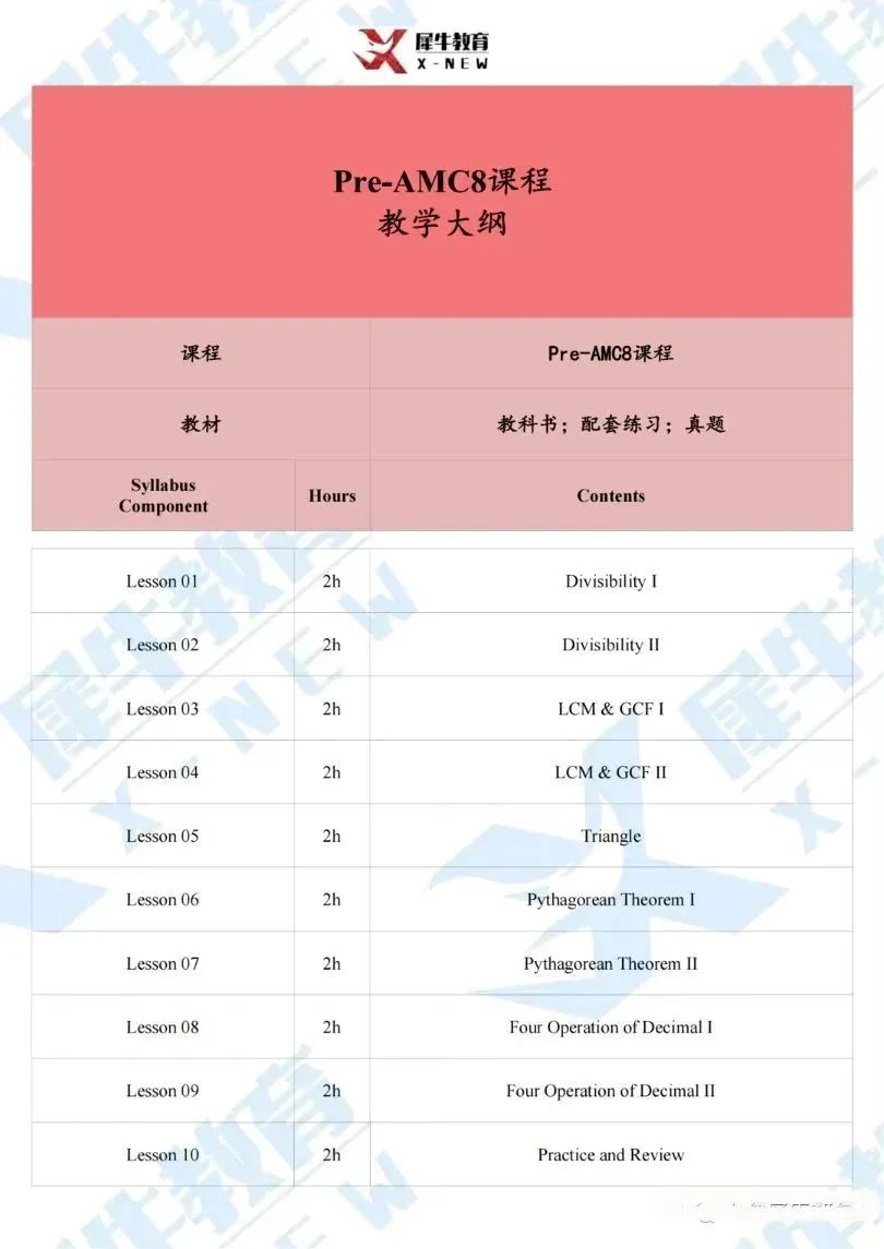 犀牛Pre-AMC8课程主要是针对3-5年级学生设计的适合数学基础比较薄弱或或者想要长期备考AMC8的学生,专为AMC8数学竞赛的备考而设。以下是课程详细介绍:
