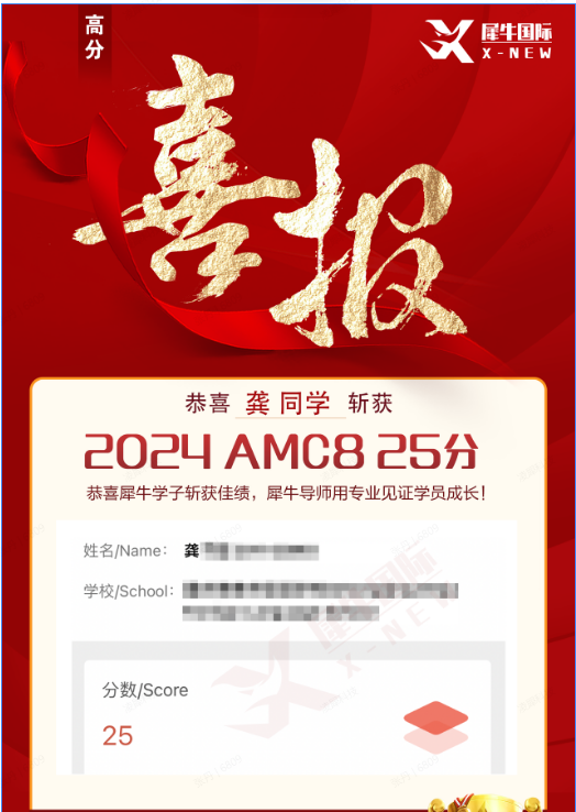 AMC竞赛培训作为犀牛国际竞赛的优势产品,在4年的时间内已经带领众多学生在AMC8、AMC10、AMC12以及AIME竞赛上取得优异成绩!