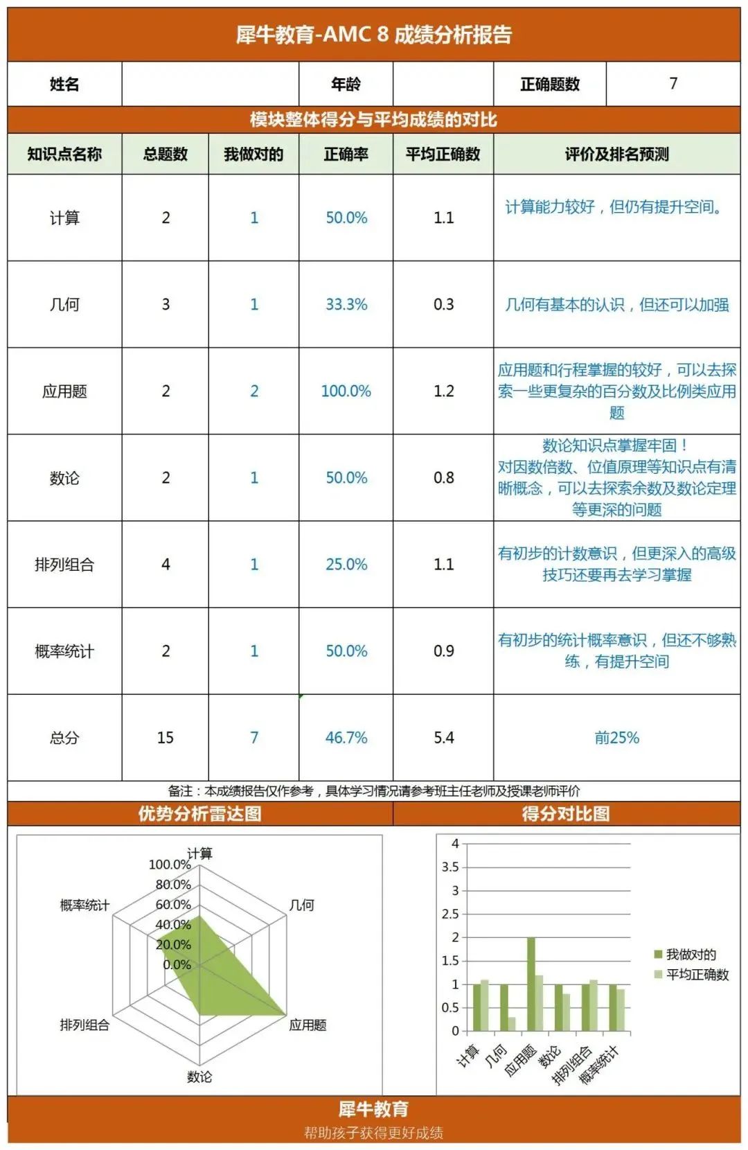根据国内AMC8竞赛备考人群和学生基础,犀牛自研符合国内学生需求的AMC8竞赛课程,主流备考人群3-8年级,开设Pre AMC8和AMC8直通车,帮助不同学习基础学生高效备考一站式拿下AMC8前1%!
