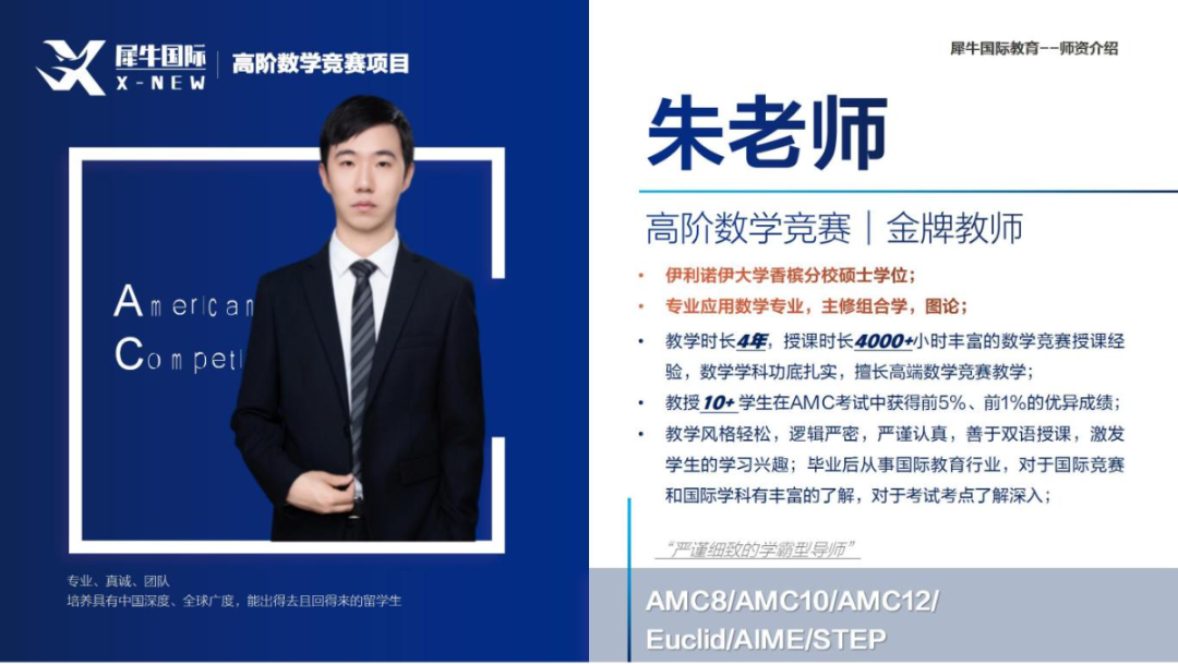 主授课目:AMC8/AMC10/AMC12/Euclid/AIME/STEP