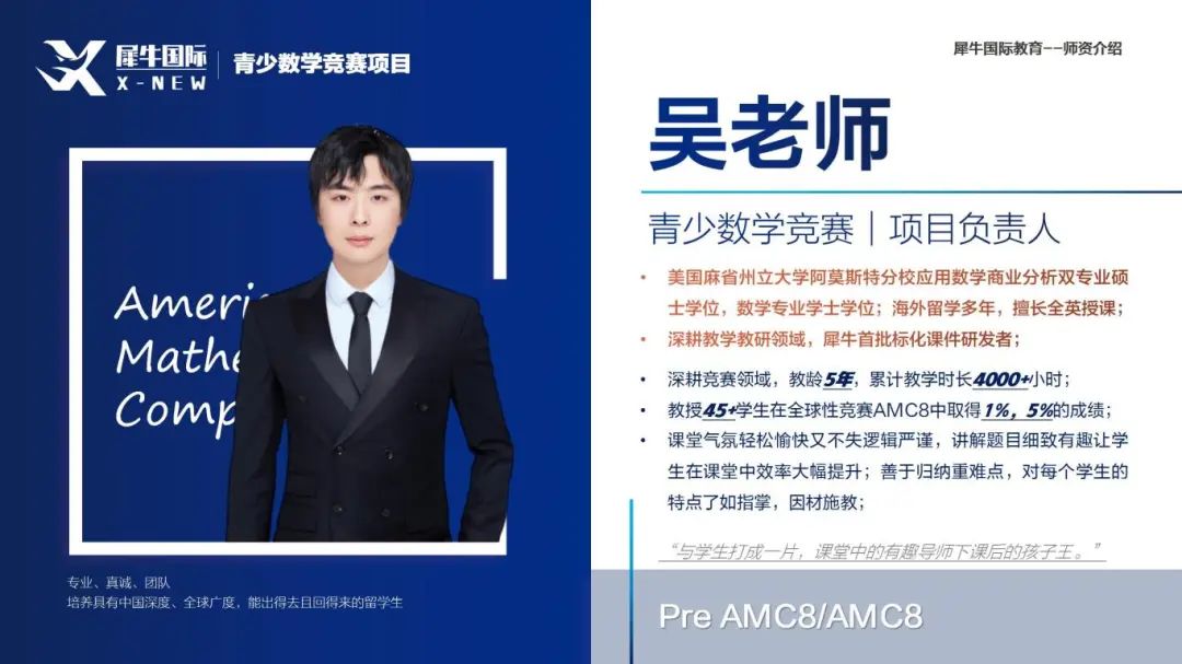 主授课目:(Pre)AMC8/AMC8/(Pre)AMC10/AMC10