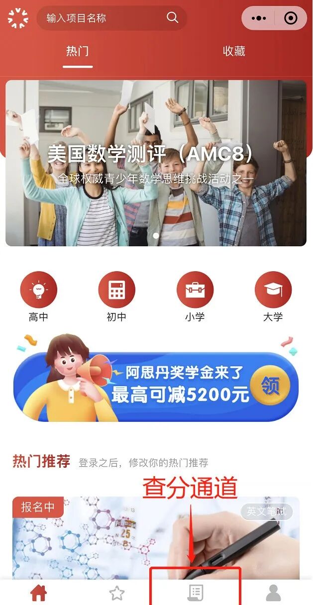 *注意:AMC10/12成绩查询以同学们最初的报名通道为准,通过AMC中国赛区组委会所属考点报名的同学,可通过AMC中国区组委会官网查询成绩;通过阿思丹小程序报名的同学则只能在阿思丹小程序查询;其他代考点报名的同学请以各自考点通知为准