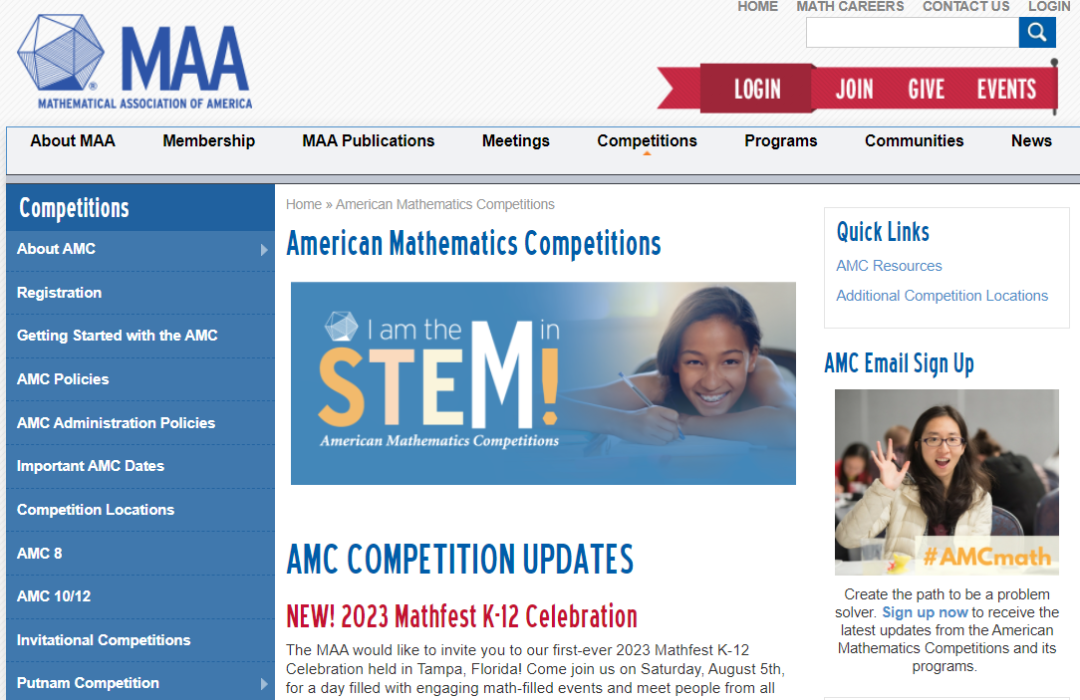 https://maa.org/math-competitions/about-amc(https://maa.org/math-competitions/about-amc) ,作为AMC赛事的官方网站,这里汇聚了大量AMC10的考试信息,包括竞赛基本介绍、考试要求、考试时间等。