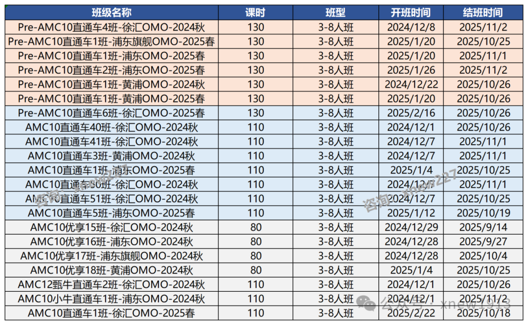 犀牛AMC10课程设置了多种班型,以满足不同学生的需求,包括Pre-AMC10课程直通车、AMC10课程直通车、AMC10课程基础班、AMC10课程强化班、AMC10课程冲刺班等。