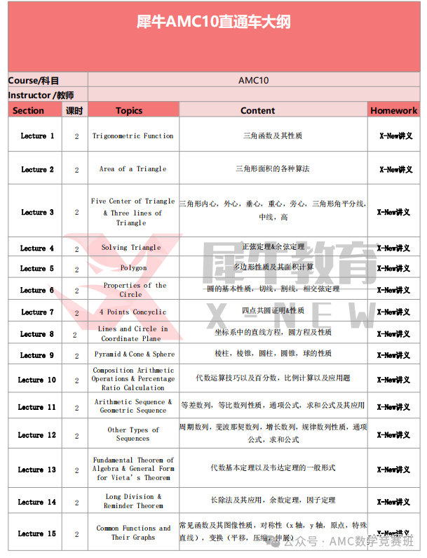 🌈课程目标:针对备考6-8年级备考AMC10同学,犀牛国际设置了Pre-AMC10直通车课程,帮助大家夯实基础,补齐校内没有学到的AMC10竞赛考点,冲刺AMC10竞赛前1%!