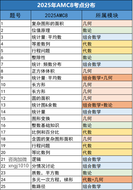 🌈考试内容:从历年真题来看,大致涵盖基础代数、基础几何、基础组合和基础数论4个模块: