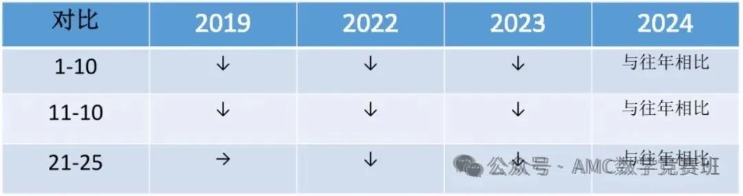 通过对于去年2024年AMC8考情的分析,可以发现AMC8数学竞赛难度不断跃级,逐渐向AMC10竞赛难度逼近,导致很多同学发挥不佳,也使明年准备参赛的同学产生了畏难。