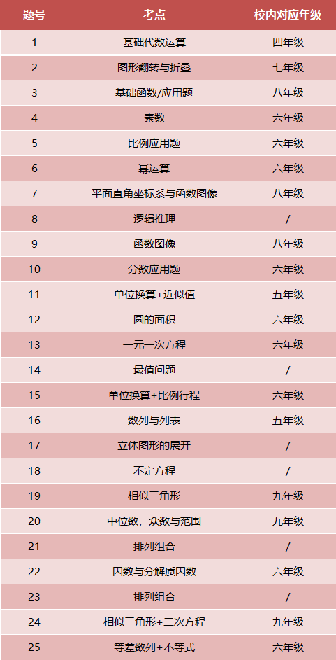 AMC8数学竞赛的考查内容十分广泛,不仅涵盖了小学阶段的全部数学知识,还适度拓展到了初中阶段的核心知识点。