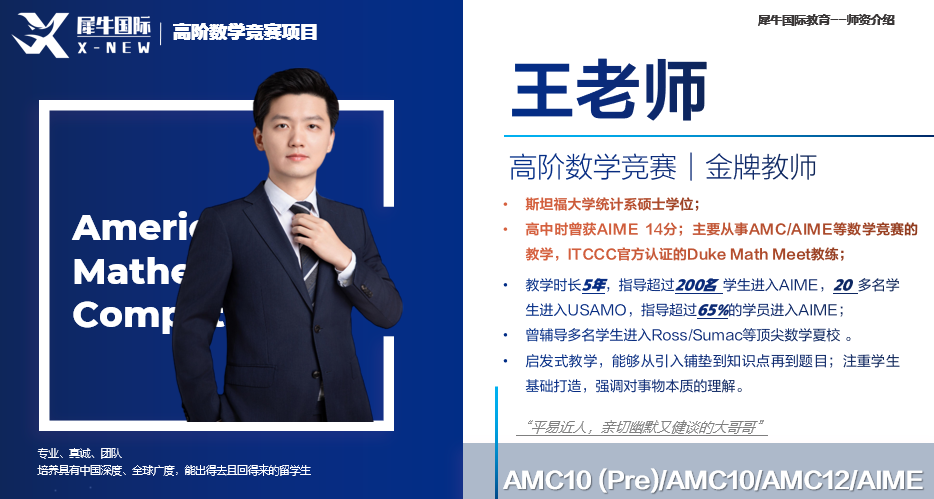 犀牛国际教育AMC10数学竞赛辅导课程机构绝对是你的不二之选,这里有精品3-8人小班课、资深AMC教学团队,对于那些有志参加AMC10数学竞赛的学生而言,千万不能错过: