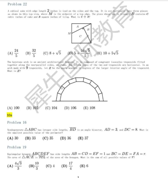 🔷概率与统计:古典概率的计算、条件概率的理解以及统计中的样本均值、标准差等概念,在AMC10数学竞赛中占据一定比重,尤其是结合实际问题进行考察。