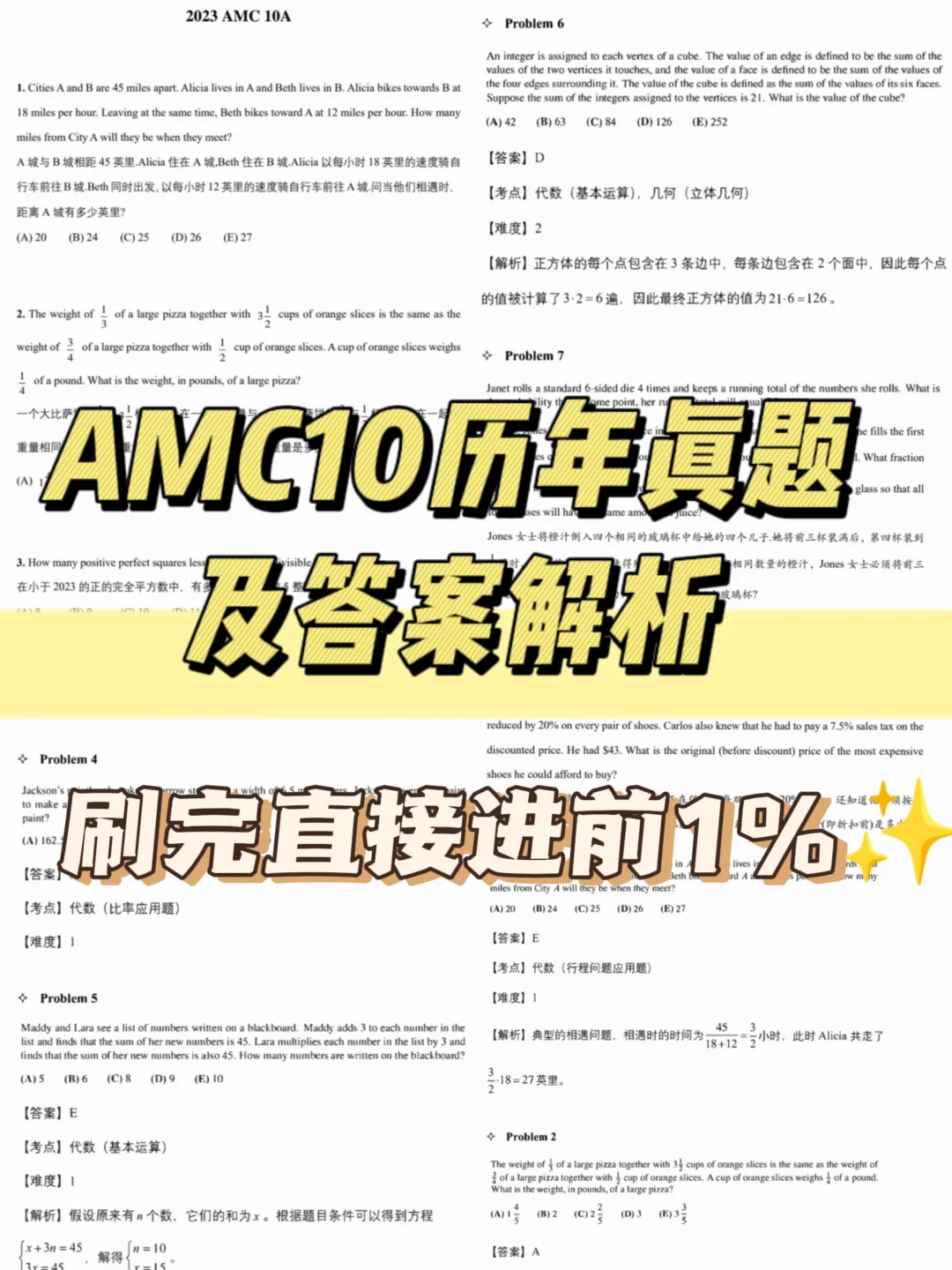 AMC10数学竞赛,作为备受瞩目的数学赛事,每年11月左右便是竞赛的关键时间节点。在整个备考环节中,刷历年真题堪称不可或缺的重要步骤。通过钻研历年真题,同学们既能熟悉竞赛题型、把握命题规律,还能有效提升解题技巧与思维能力。