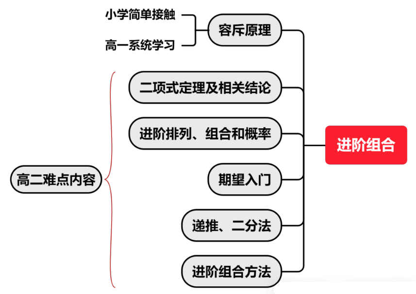 计数原理:主要是加法原理,即完成一件事有 n 类办法,每类办法中有不同的方法数,将各类方法数相加得到总的方法数;乘法原理,即完成一件事需要 n 个步骤,每个步骤有不同的方法数,将各步骤方法数相乘得到总的方法数。