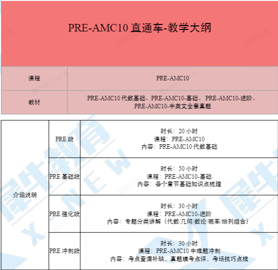 教学内容:全面串讲和梳理AMC10基础知识点,对考点进行专题分类解析,通过真题模考查漏补缺。同时,传授答题技巧,助力学生在考试中高效、精准作答,斩获高分。