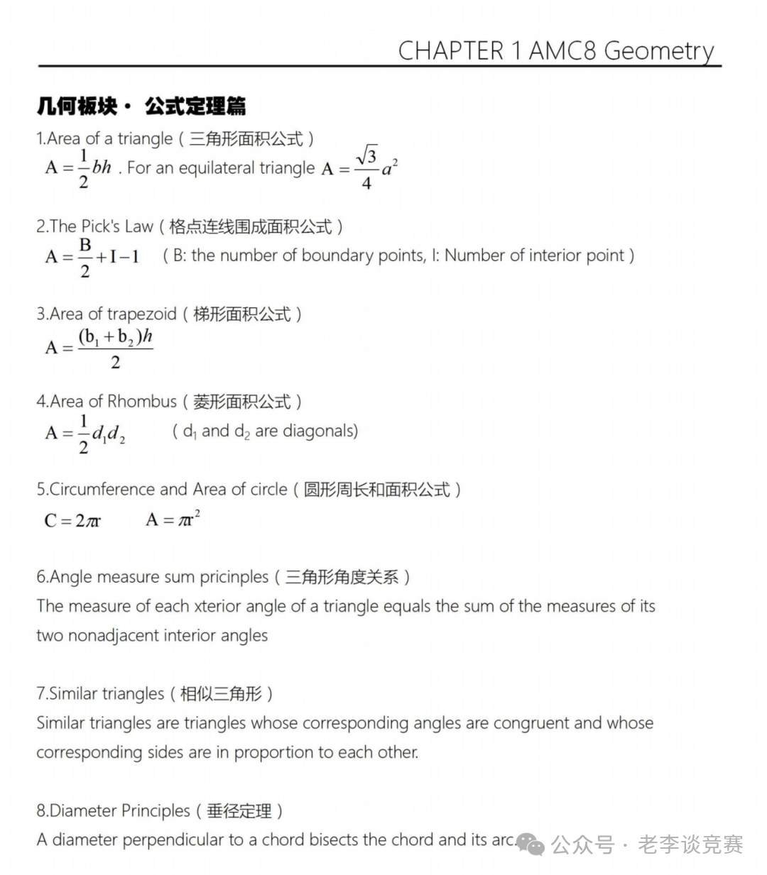 为助力同学们在AMC8数学竞赛中脱颖而出,建议充分利用《AMC8数学竞赛必备公式表》,逐步实现对公式的熟练掌握与灵活运用,从而更从容自信地应对竞赛挑战,为取得优异成绩筑牢根基。