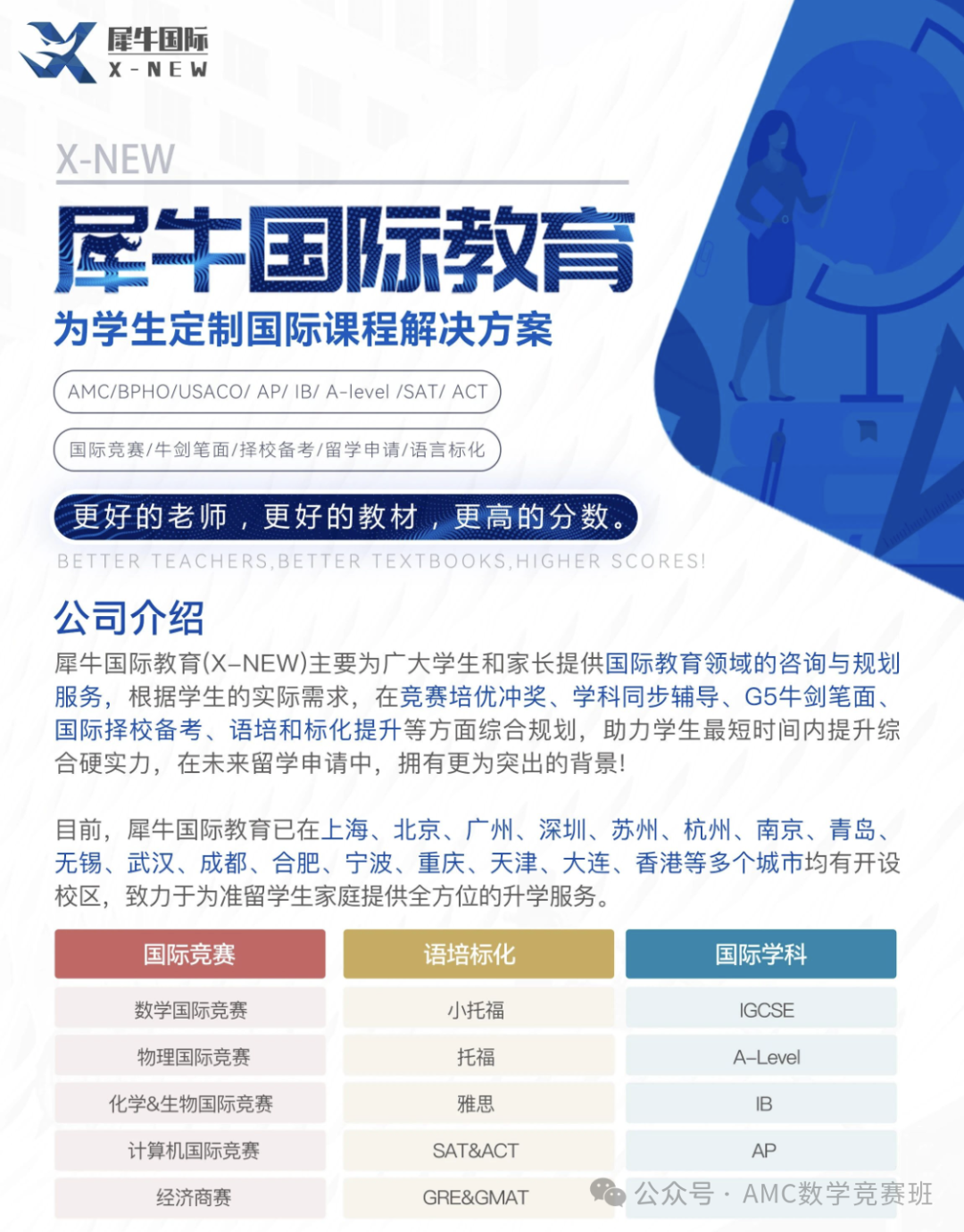 AMC8课程辅导线上线下均可上课,全国17+城市22+校区: