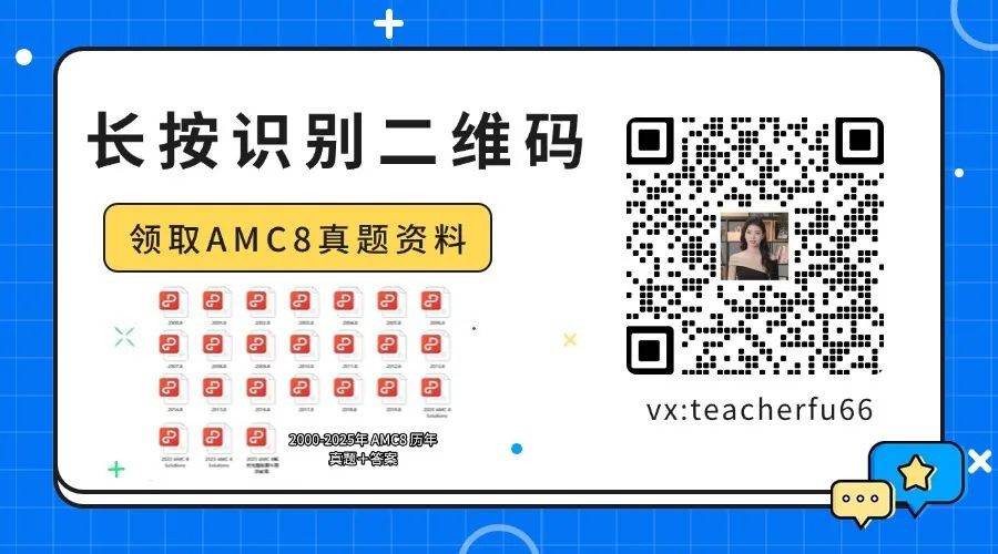 想备赛的话,刷真题绝对是 “王炸” 攻略!这不,我给大家整理好了 AMC8 数学竞赛真题资料,扫码就能领,手慢无!