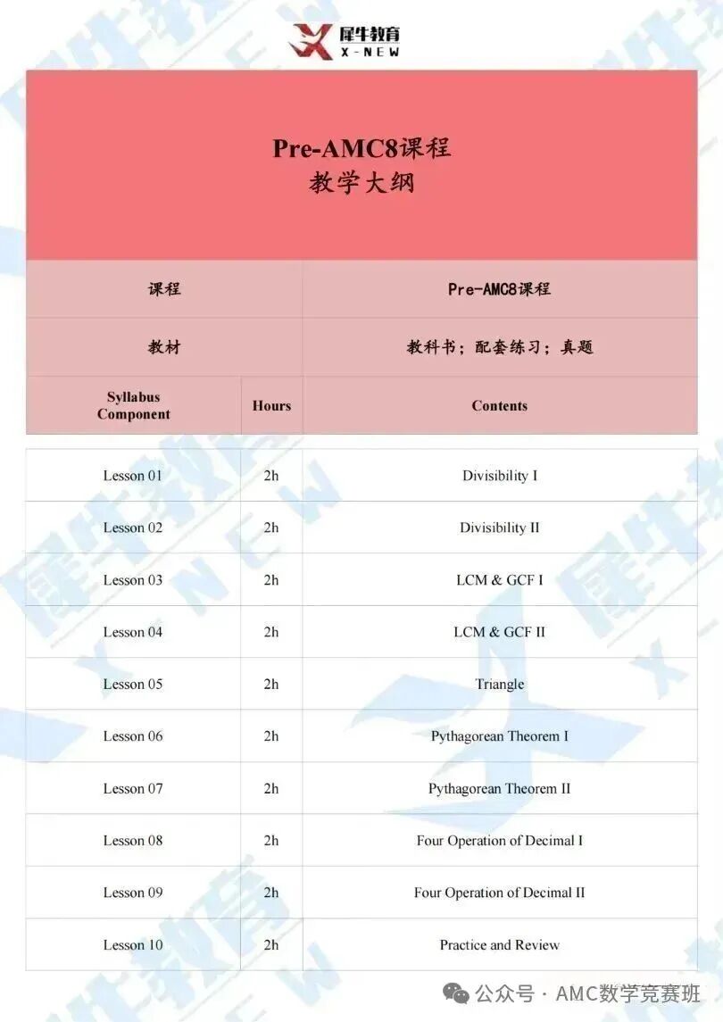 针对3-5低年级学生备考AMC8数学竞赛的需求,PreAMC8课程应运而生。