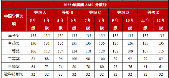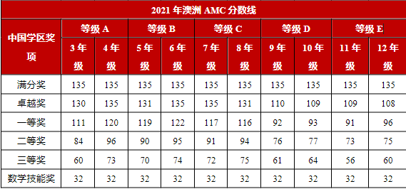 澳洲AMC竞赛:La等级 = 3~4年级,Lb等级 = 5~6年级,Lc等级 = 7~8年级,Ld等级 = 9~10年级,Le等级 = 11~12年级,基础好的学生可以跨级别参赛,只能跨高,不能跨低。