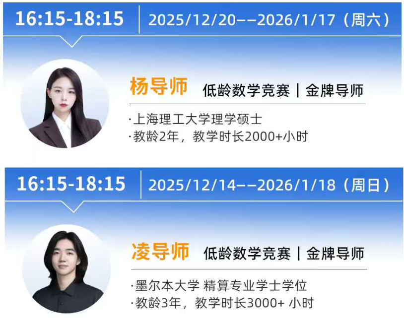✅师资保障:授课老师自身即为竞赛获奖者/资深教练,深谙出题思路与备考陷阱。