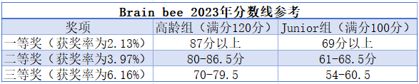 Brain Bee全国活动奖项分数线