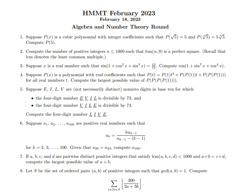 关键字:HMMT哈佛麻省理工大学数学竞赛,