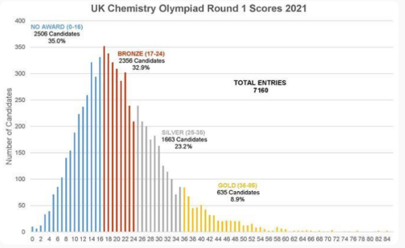 2021年UKChO竞赛获奖数据情况: