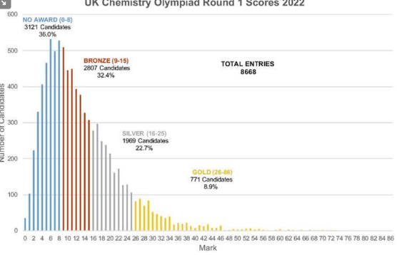 2022年UKChO竞赛获奖数据情况: