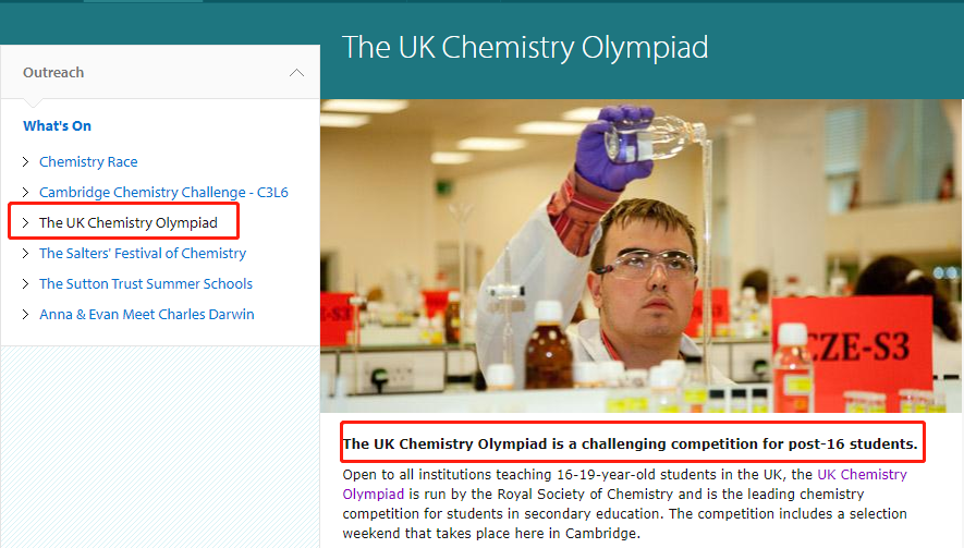 UKChO是英国G5院校申请的不二之选,是全球化学、医学等王牌专业敲门砖。更是被剑桥大学直接点名的,并在其官网上推荐学生积极参与,鼓励学生借此逐渐强化化学思维和能力,为进一步大学学术型学习和研究做好准备。