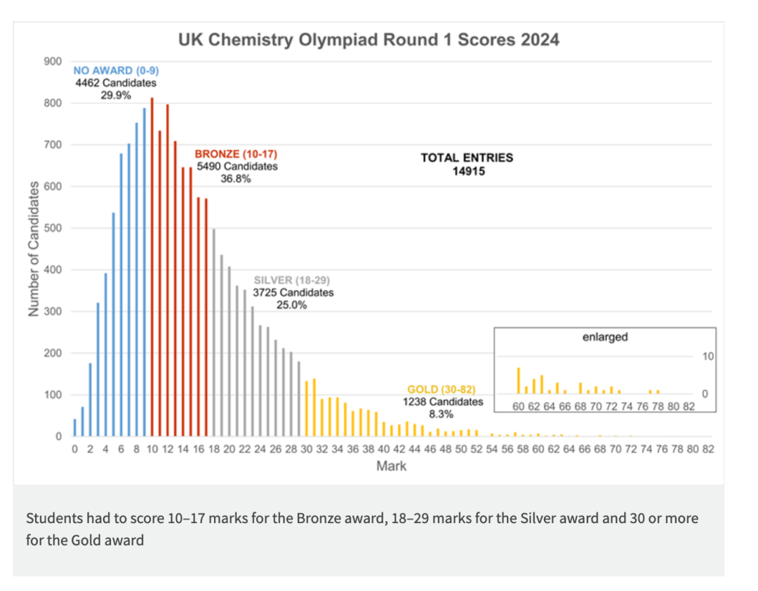 2024年UKChO竞赛获奖数据情况: