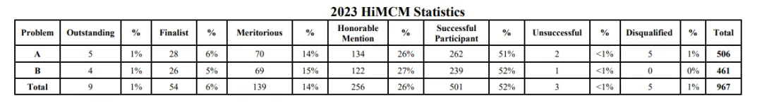2023年共有967支队伍参与了HiMCM数学建模竞赛,这些队伍来自全球18个不同的国家/地区,涵盖了417所学校。