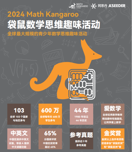 此外,袋鼠数学竞赛的内容与国际课程如IB和A-level的学科内容相一致,这使得它成为检验学生对应年级数学知识点掌握情况的理想平台。通过参与竞赛,学生不仅能够巩固校内数学知识,还能拓展更多的数学视野。