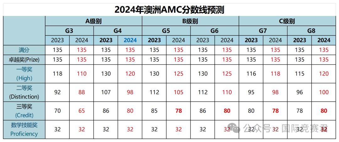 为了帮助学生和家长更好地了解成绩水平,以下是2021年至2023年的澳洲AMC分数线回顾以及2024年澳洲AMC分数线预测。