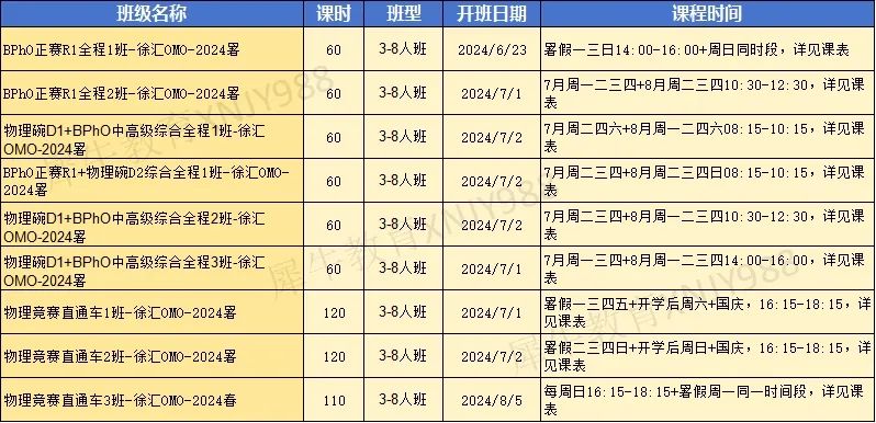 犀牛物理竞赛课程安排
