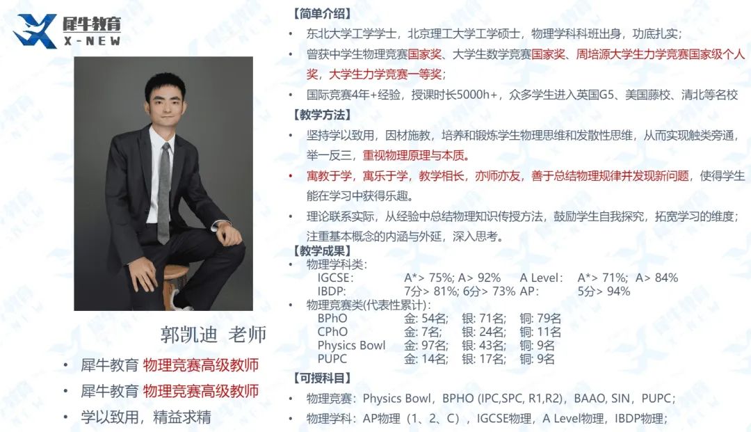 犀牛教育由犀牛资深物理导师带队,竞赛授课经验丰富,所带学生拿奖众多