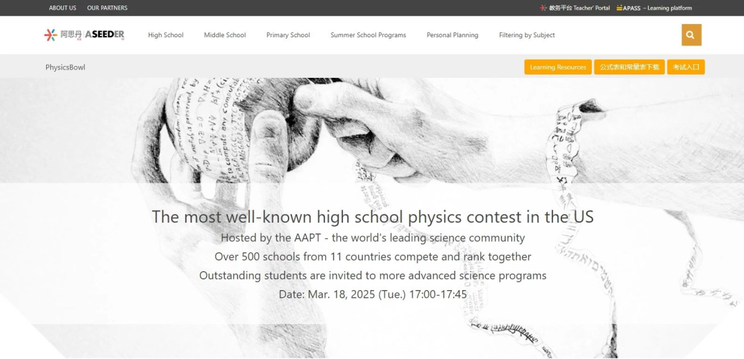 物理碗是由美国AAPT机构举办的著名高中生物理学科赛事。每年都有来自各个国家的5000余名学生参与其中,挑战性非常强。相较于BPhO物理竞赛,物理碗竞赛的难度稍低,其获奖率也会更高一些,成为国际生在背景提升项目中的理想选择之一。