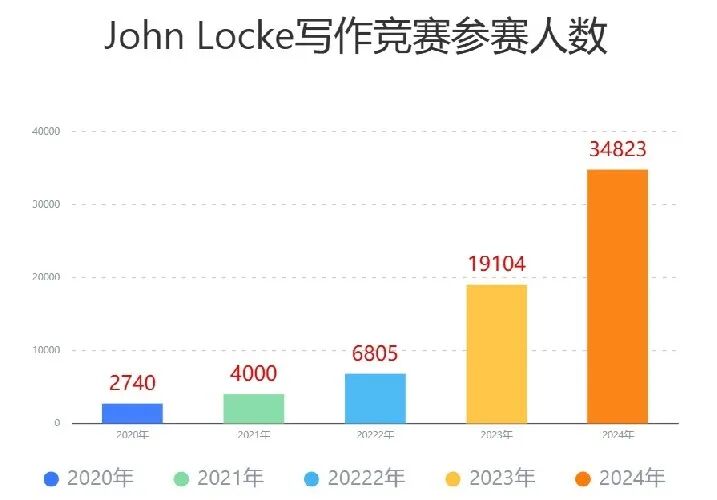 据官网发布的数据,自2020年以来,每年John Locke写作竞赛参赛人数都在逐年上涨,这说明JL竞赛在世界上的知名度和影响力不断扩张。