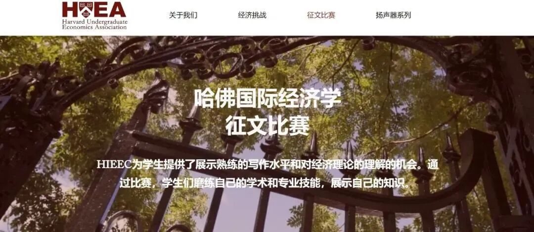 哈佛国际经济学论文大赛(HIEEC)由哈佛大学本科生经济学协会(HUEA)和《哈佛大学经济评论》(HCER)联合主办。