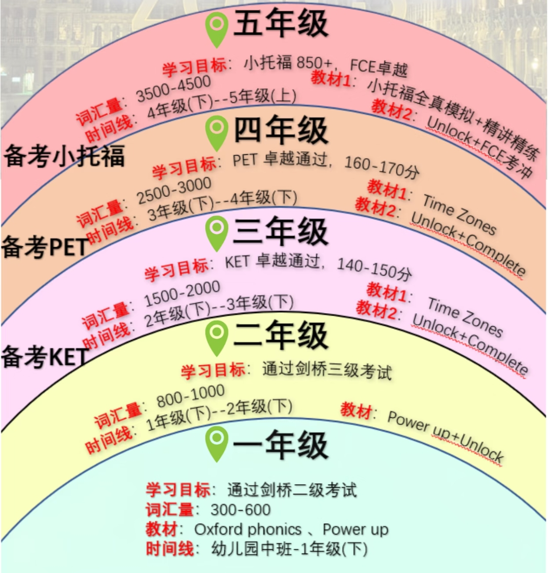 ⭐英语提升类学校英语教学注重听说读写综合能力,一些家长会选择英语口语、阅读写作或国际课程(如剑桥英语KET/PET、小托福等)的课外辅导,帮助孩子提高英语水平,增强语言应用能力。
