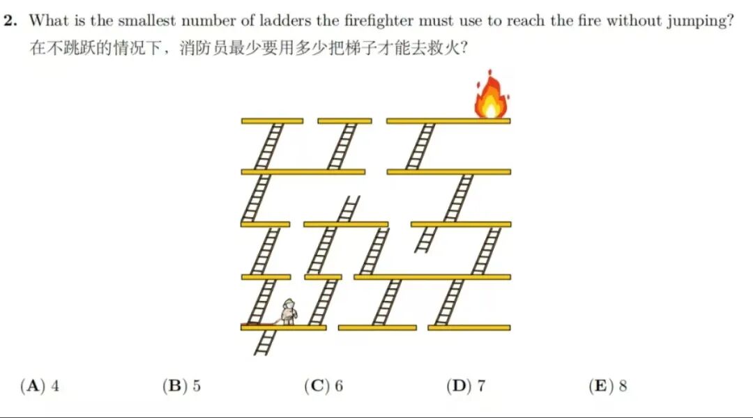 题目分析:这是来自2024年LevelB的题目,这道题主要核心考察孩子的观察能力,一目了然明白问题,通过尝试,确定最少的梯子数量,这样的题目有趣,能带动孩子去观察